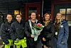 NUMMER 50 000: Caroline Dahl (midten) ble behøring feiret da hennes fiberforbindelse var ferdig montert. Direktøren i Haugaland Kraft Fiber, Mariann Salvesen (nummer to fra høyre), forteller at satsingen fortsetter.