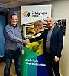 AVTALE: Fra venstre: Nikolai Støbakk Nordstrand, leder for avdeling Fiber i Sykkylven Energi AS, og Ola Engvik, ansvarlig for salg og markedsføring i Wholesale & Partners i Telia Norge. Daglig leder Per Arne Edvardsen i Sykkylven Energi var ikke til stede da bildet ble tatt.