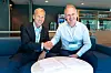 På biletet ser du Ivar Driveklepp, adm. dir. i Tussa IKT og Roy Gurskevik, dagleg leiar i Axbit, då avtalen vart signert på IT-cruise på Havila Polaris i Geirangerfjorden i går.